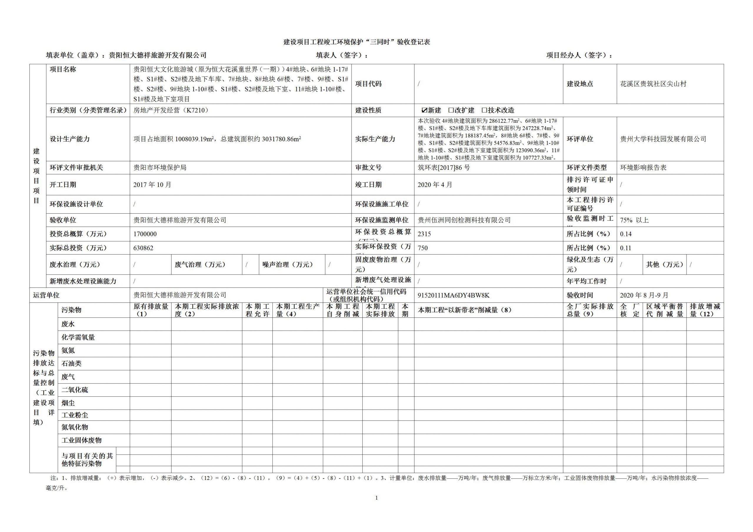 当前位置:网站首页 > 环保验收公示 > 关于《贵阳恒大文化旅游城(原为恒大花溪童世界(一期))4#地块、6#地块1-17#楼、S1#楼、S2#楼及地下车库、7#地块、8#地块6#楼、7#楼、9#楼、S1#楼、S2#楼、9#地块1-10#楼、S1#楼、S2#楼及地下室、11#地块1-10#楼、S1#楼及地下室项目竣工环境保护验收》公示 > 贵阳恒大文化旅游城4#地块、6#地块1-17#楼、S1#楼、S2#楼及地下车库、7#地块、8#地块6#楼、7#楼、9#楼、S1#楼、S2#楼、9#地块1-10#楼、S1#楼、S2#楼及地下室、11#地块1-10#楼、S1#楼及地下室项目竣工环境保护验收监测报告表三同时表_01